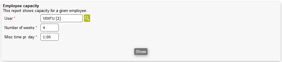 In this section it is possible for administrators of Microbizz to view the schedule for the employees (i.e. their capacity) which may be occupied bytasks, meetings, appointments, vacations, etc.