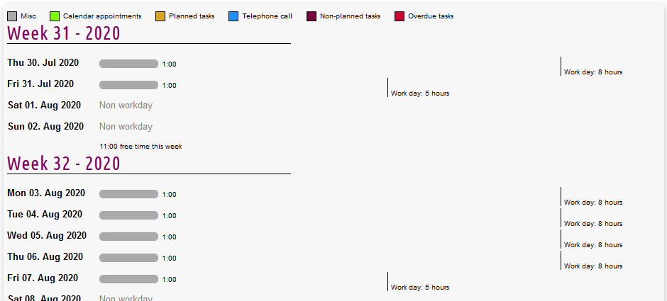 Misc time pr. day: How much extra, non-specified time there should be included in the overview