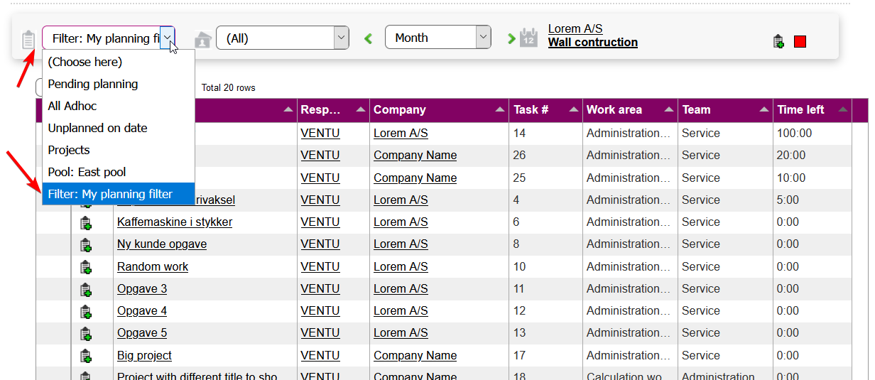 For example as shown below where the user selects a custom filter to find specific tasks.