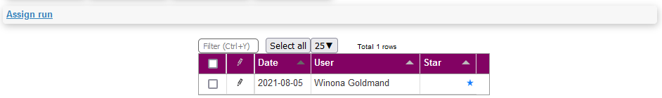 Runs: By clicking on the Assign run, you can create and assign runs for specific users