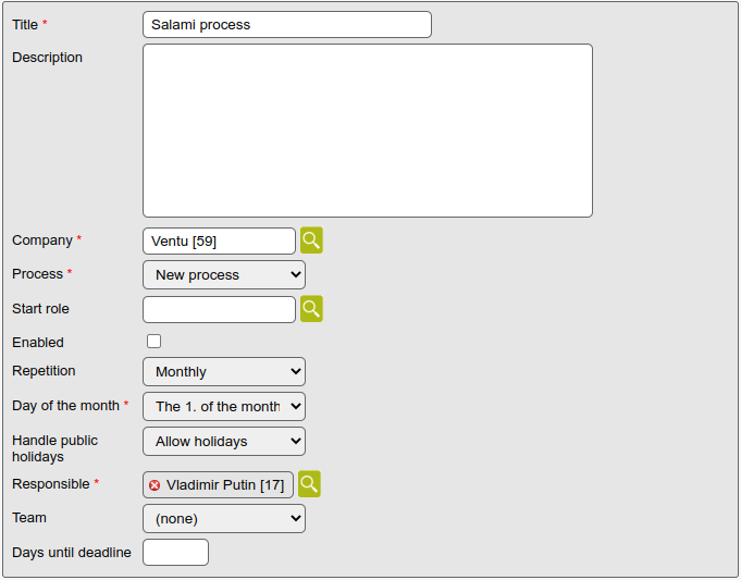 Notification advance: How many days before the deadline should people be notified? A mail will be sent to the user/person that has been assigned the role