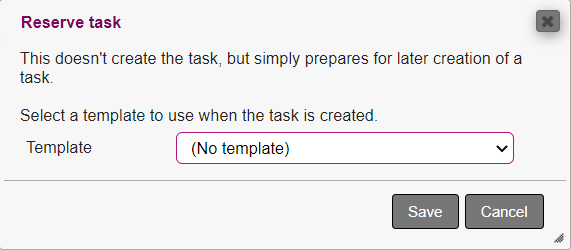 When choosing reserve task, the user indicates that a task should be created on this activity, but not immediately. This is done to prepare for the upcoming work, but the user doesn't wish to create the tasks yet.