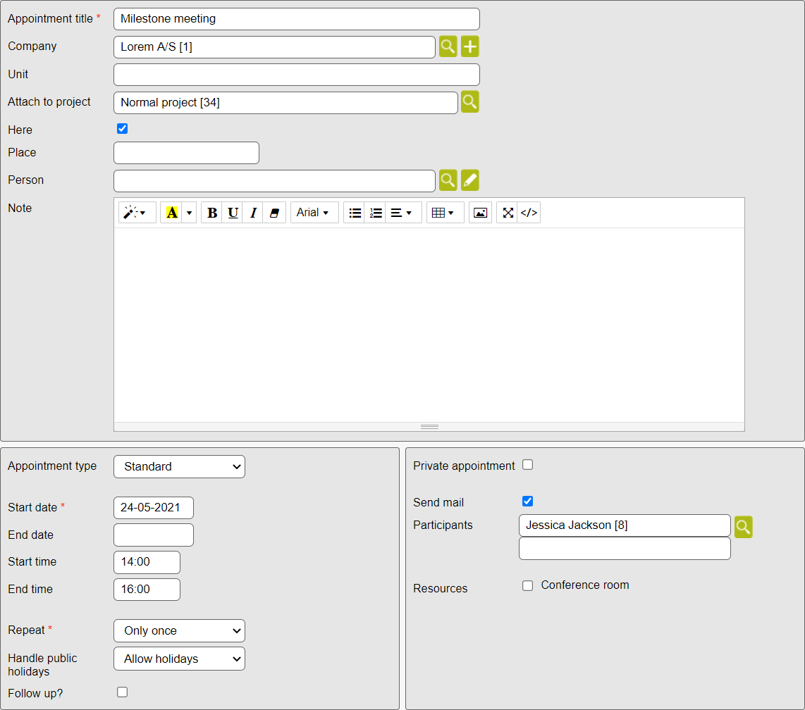 If the activities are moved either manually or as a result of their dependencies, the appointments will be changed as well.