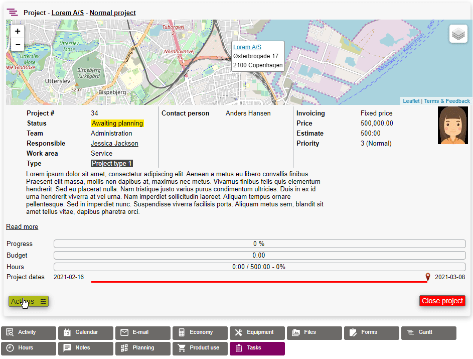 Press on the event, choose to project and search for the right project.