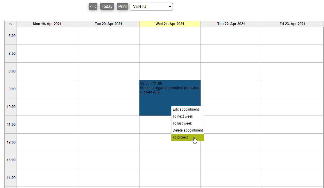 Adding a calendar event to a project