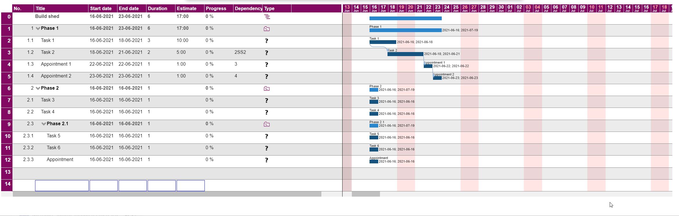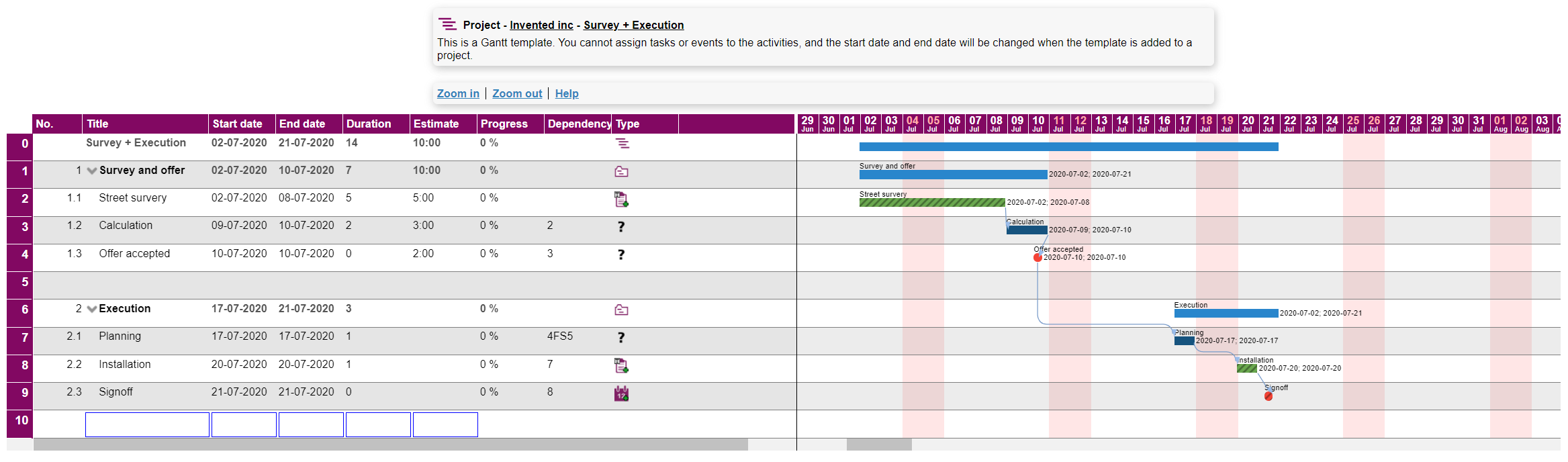 The dates aren't important when setting up the template, as they will be set depending on where in the project they are added.