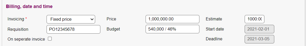 - On separate invoice: If marked, then when the project is invoiced, it will always create a new invoice and never be placed on a already existing invoice that are from the same company as the project