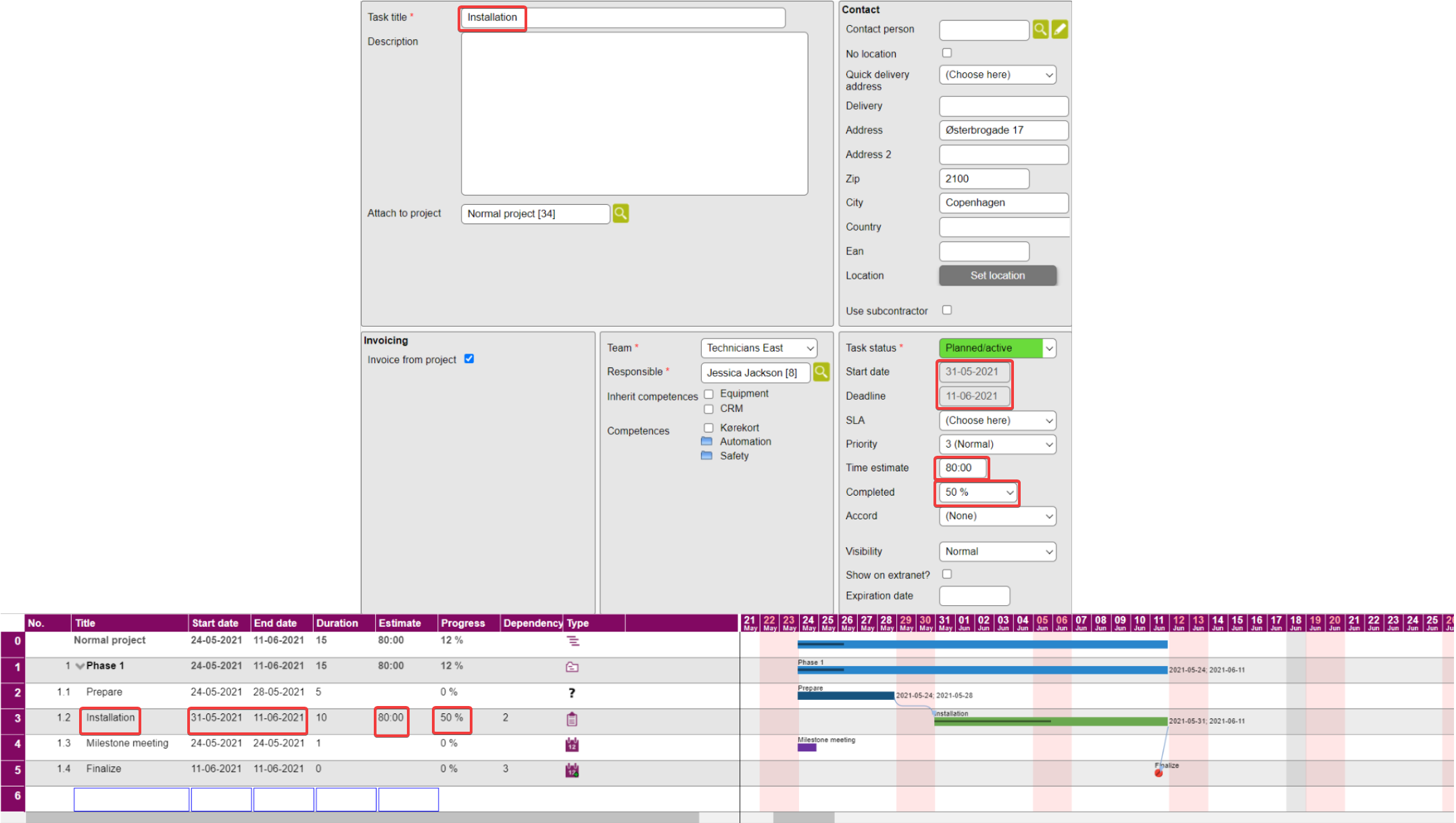 When a task is attached to an activity, the star date and deadline of a task aren't editable. This is done to ensure that the tasks are controlled by the project timeline.
