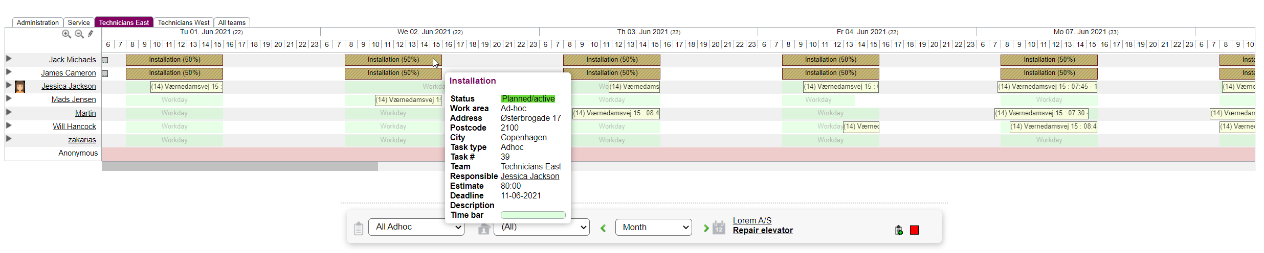 As seen below, the result of the planning in the full day view, and the normal planning.