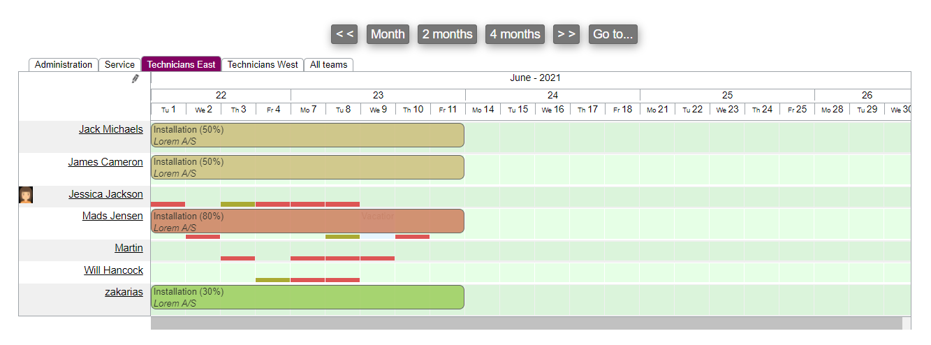 Here you will find Information about which users are available and execute the planning. The section has a cpouple of options to determine which teams and users to display.