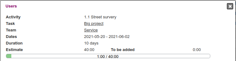 The window that appears allows you to plan for the users. Top of the window is the info section, below that is the planning section.