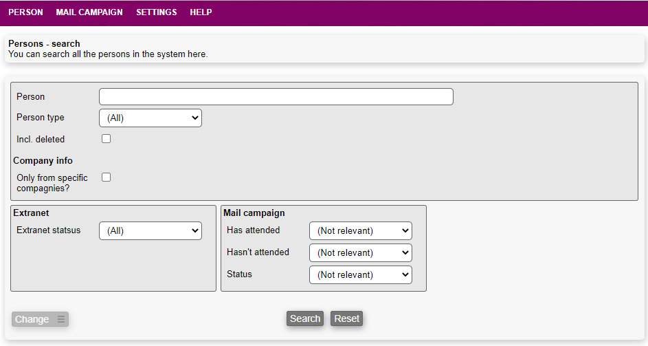 The person card is accessed either by the menu SEARCH or SEARCH WITH FILTER where you can search for all the persons in your system with or without filters, respectively.