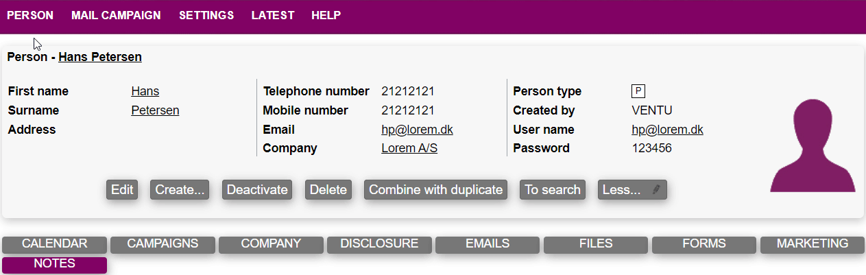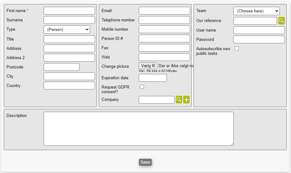 Type: Person types are a way of grouping persons across Microbizz. Learn more about these in the Person types section