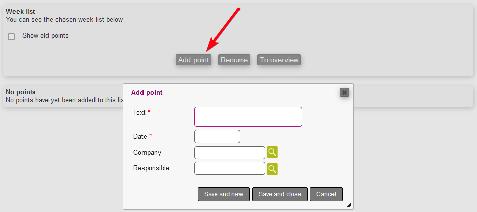 By pressing the Add point button, you have to fill out the following: