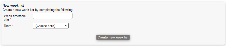 In order to create a new week list, you need to fill out the following: