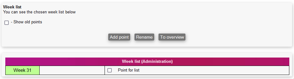 When you are done, you can press Create new week list button. This will also result in a submenu for quick access: