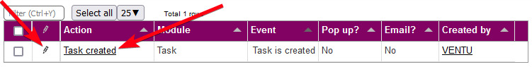 Editing an action happens on the same menu. Just click on the pencil or directly on the title to enter edit mode.