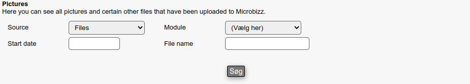 This allows you to search the picture files that have been uploaded to Microbizz.