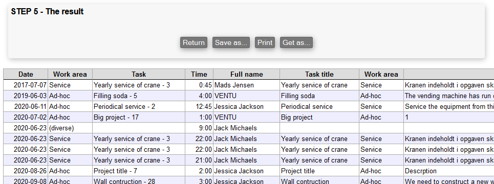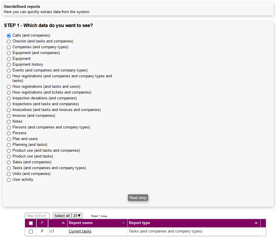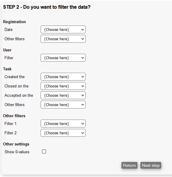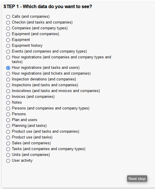 When you have finished choosing the data you want to see, press the Next step button.