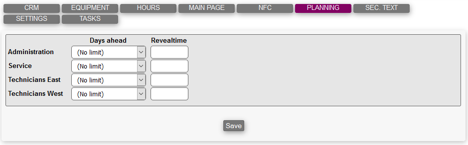 Revealtime: Choose when future planning will become visible for the user. F.ex. at 06:00 two days before the day of the planning.