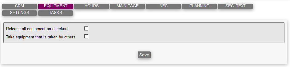 Release all equipment on checkout: If checked, all equipment taken by users are released on checkout