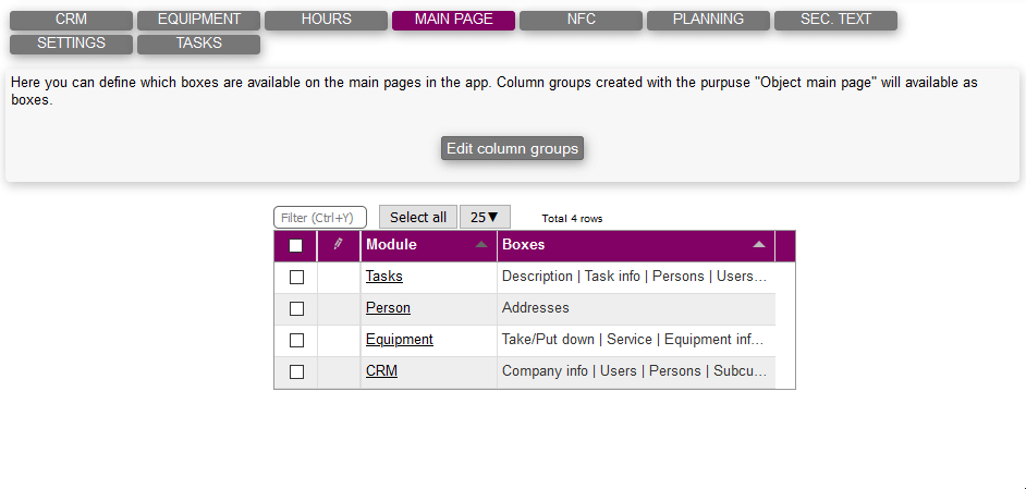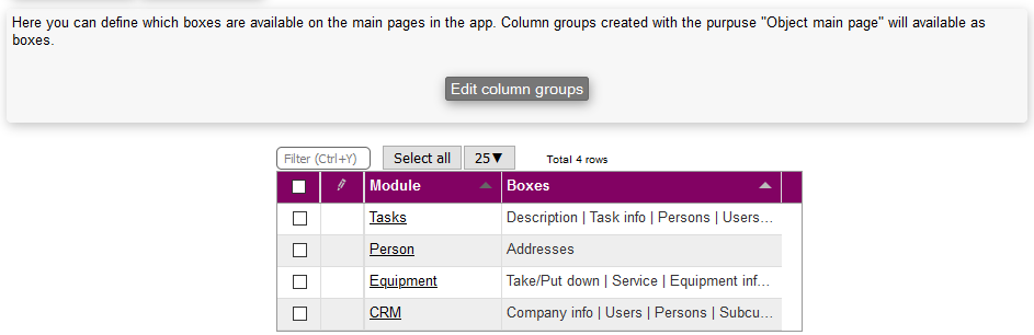 By clicking the "Edit column groups" button, you are redirected to the Setup module's COLUMN GROUPS.