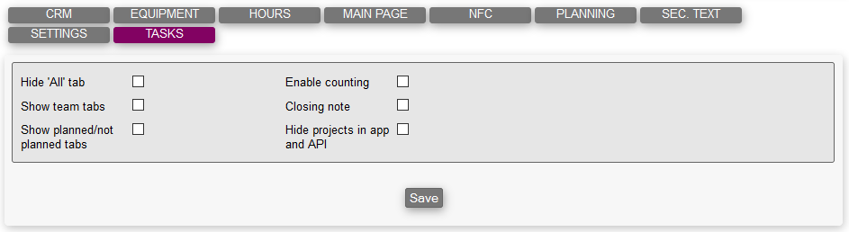 Hide prospects in app and API: If checked, any prospects in the CRM module are hidden for users