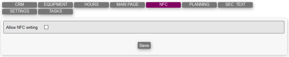 Allow NFC writing: If checked, users are allowed to make changes to Microbizz through NFC