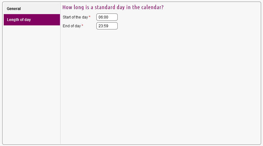 How long is a standard day in the calendar:You are able to declare what time of the day a workday begins and ends.