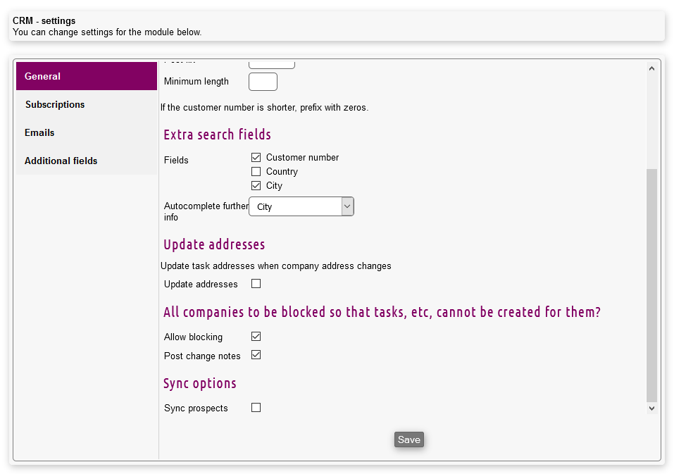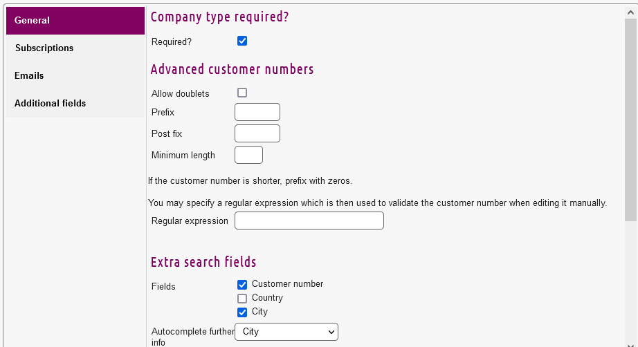 Prefix: Choose if the system should add a prefix to the customer number automatically