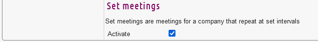 Activate: If checked, you are able to repeat meetings for companies at set intervals