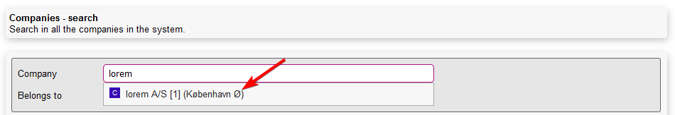 Autocomplete further info: When searching for a company, the preview text is expanded to include the selection from the drop down. In the case under, the choice was "City"