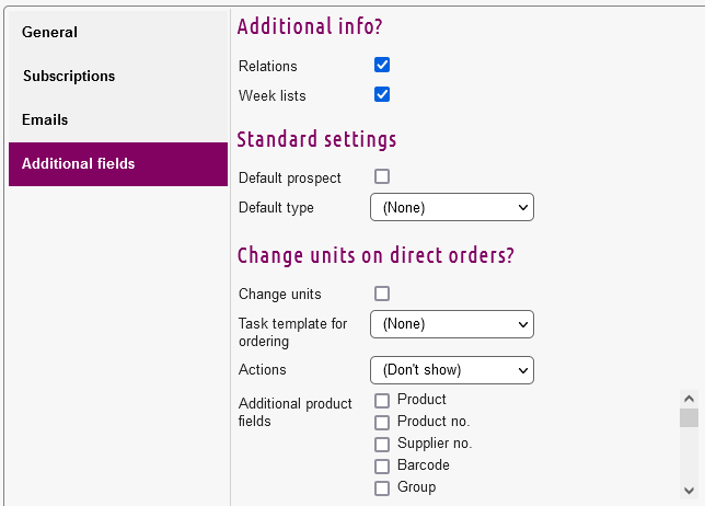 Additional product fields: Fields from the product catalog that is going to be shown under "Add. product info"