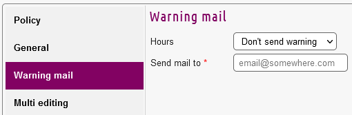 Hours: Specify the number of hours when the system should send a warning mail when a GPS tracker hasn't reported for a while. Choose one of the following: