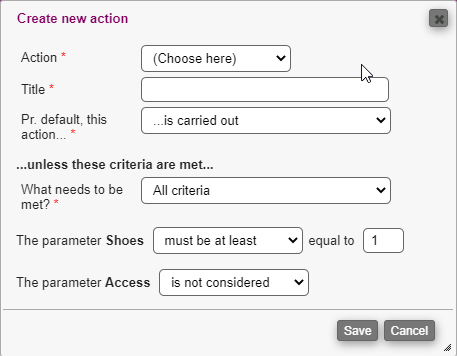 What needs to be met?: If parameters are present in the form, you can select what needs to be met, if the opposite of the default action should be carried out.
