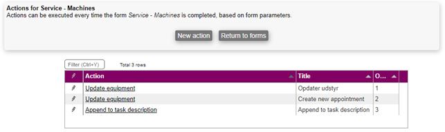 The order of execution can be critical for what and how the actions end up. For example, if a "Create PDF action" is combined with an "Update equipment action", it might be important that the "Update equipment action" is executed before the "Create PDF action", if the PDF is supposed to include a field, which is updated through the form.