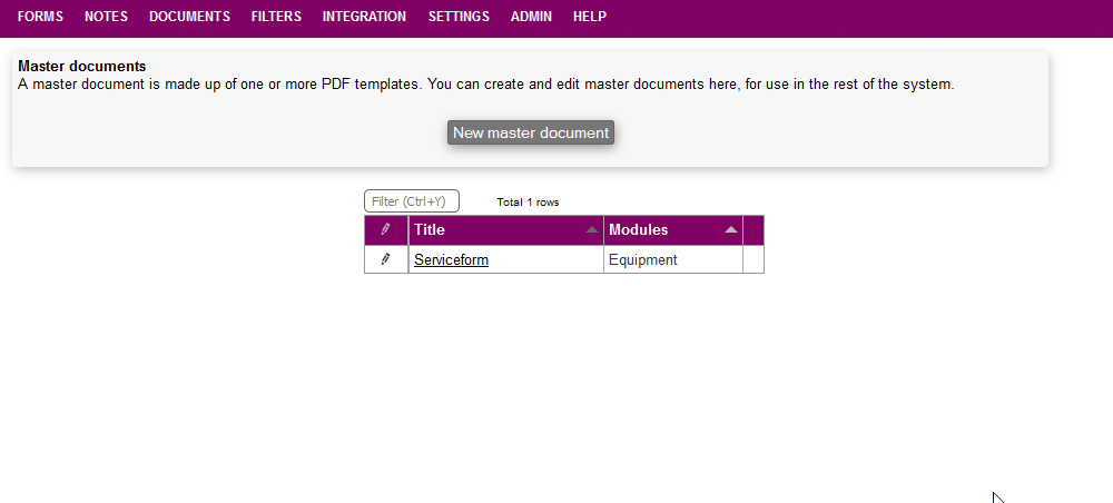 Here you can view, create and edit the necessary templates needed for creating masters.