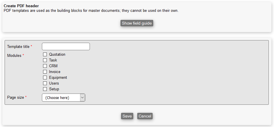 Another type of template you can create in Microbizz, is PDF. For more on how to create these, please refer to PDF templates.