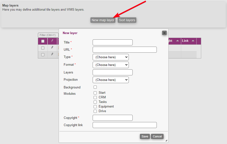 Map layers are used to make customized layers in the map for specific modules (e.g. Tasks).