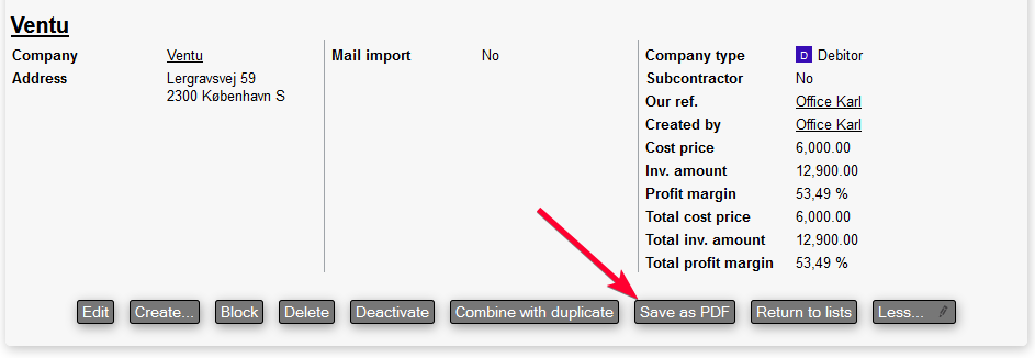 This function is available across many modules i.e. CRM- and Tasks-module, and can be found on the frontpage of the company- and task-card, respectively, as shown below. This is also possible in the equipment search,