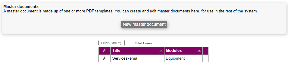 Master documents are made up of one or more PDF templates. Before you can continue in creating master documents, you need to have created at least one PDF template in advance.