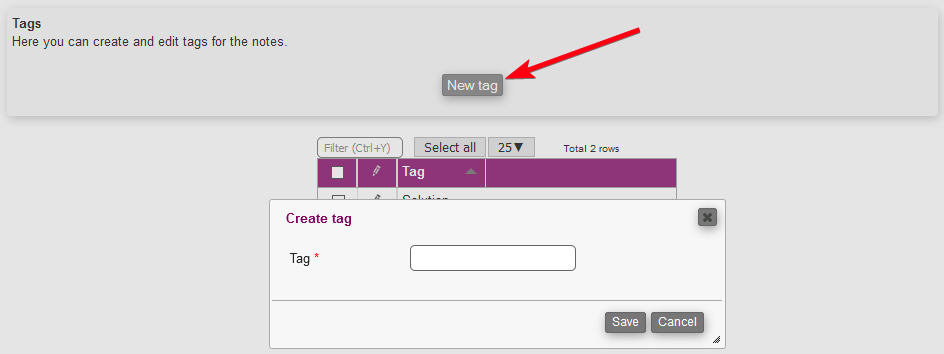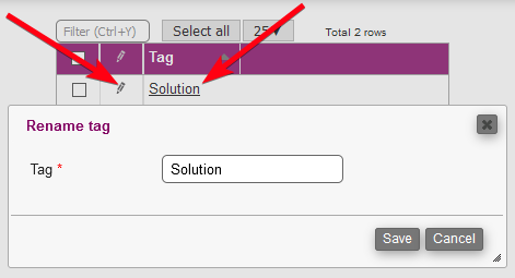 Editing a tag happens in the same menu. Just click on the pencil or directly on the title to enter edit mode.