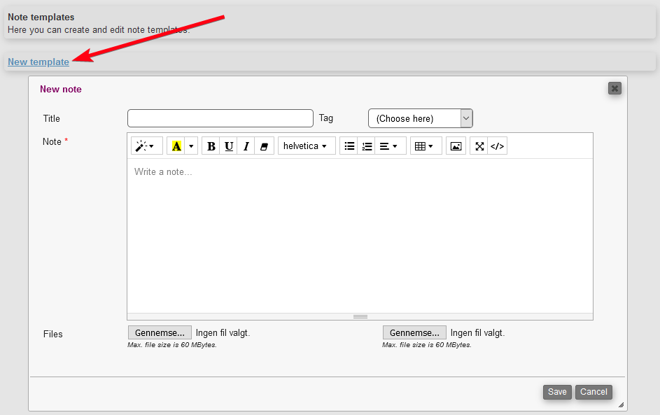 To create a new note template you need to fill out the following: