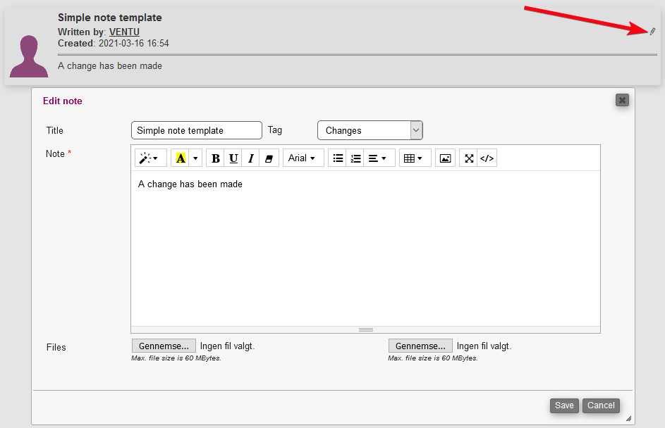 Editing a note template happens in the same menu. Just click on the pencil to enter edit mode.