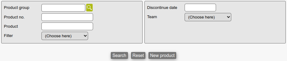 Product group: The product group the new product belongs to