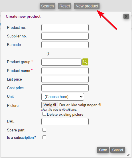 Supplier no.: Optional number for the product's supplier