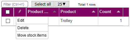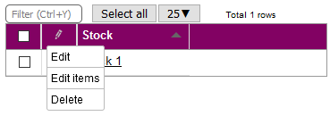 Furthermore, you have the following options when clicking on the pencil to the left of a stock item: