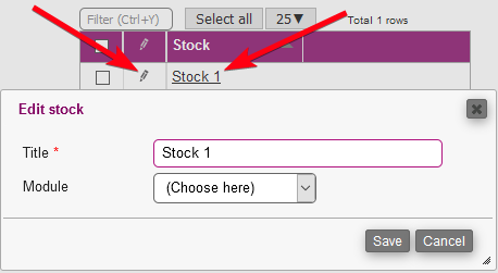 You can also edit a stock previously created by clicking the pencil and choosing "Edit" or clicking directly on the stock's title: