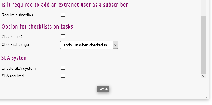 Enable SLA system: If checked, a Service Level Agreement (SLA) is activated in your system. For more on this, please refer to the SLA-settings