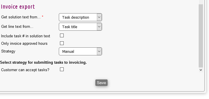 - Only invoice approved hours: If checked, only approved hours will be invoiced